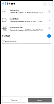 ‘Contacts’ refers to the exporters or freight forwarders that your company, as the carnet holder, regularly shares vouchers with. Keeping this list up to date makes it simple to choose frequent recipients.