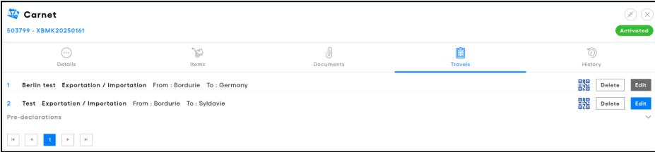| NB: If the holder prefers, they can share the entire carnet with a representative by providing the carnet’s ID and PIN code. This allows the representative to download the carnet directly into their ATA Carnet app. However, sharing the carnet in this way should be done carefully, as the holder remains fully responsible to Customs and the issuing or guaranteeing chamber if any misuse occurs. |